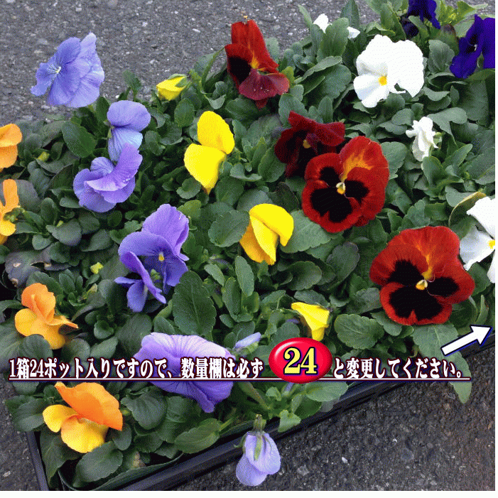 パンジー買い得入手品(3.5寸)1箱24入り。入手済み格安!★花の卸売り販売です(販売は箱単位(単価は最小単位の価格です)。必ず1箱毎に送料かかります(送料無料ギフト及び★来店引き取りを除く))
