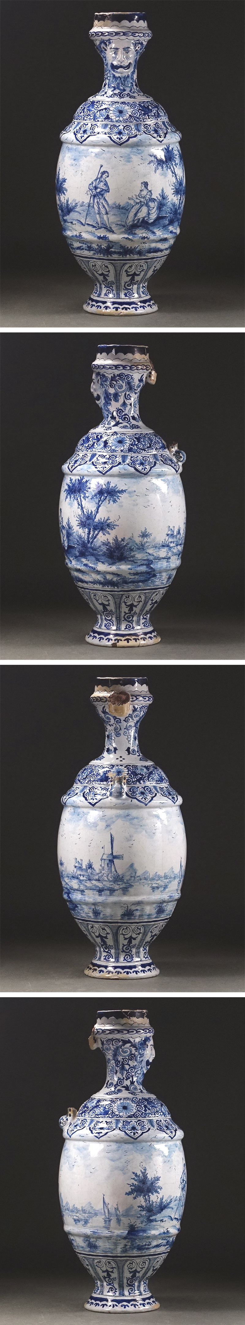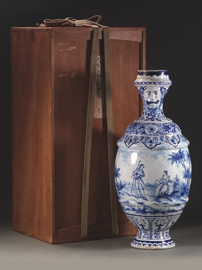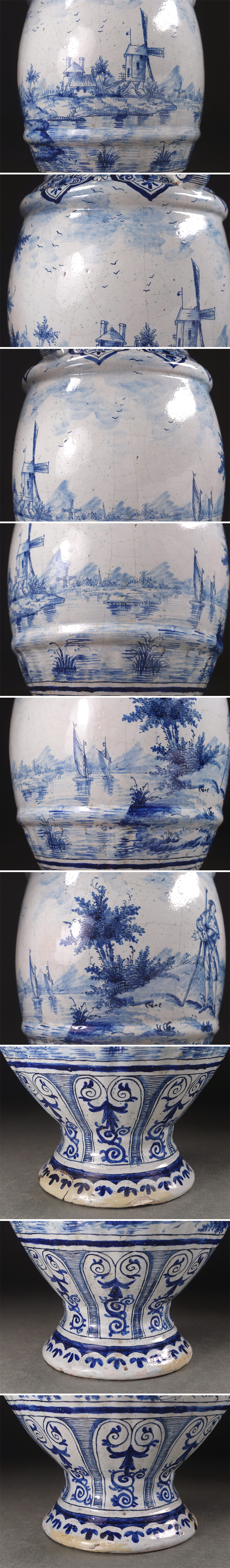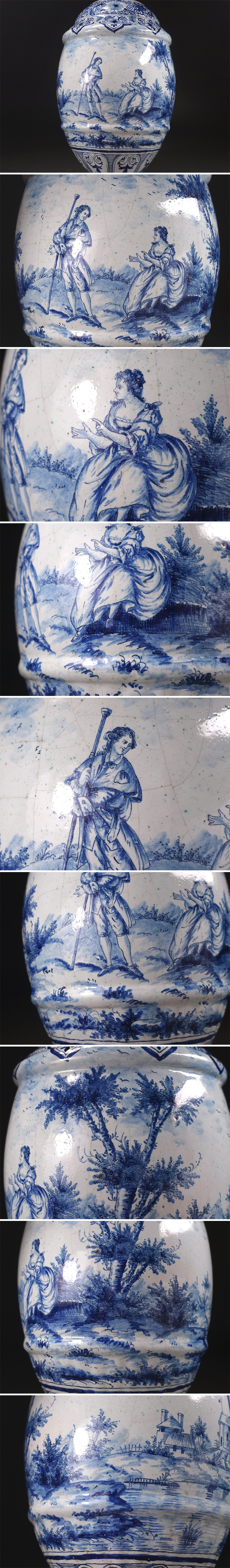 ∇花∇古デルフト陶器 18~19世紀頃オランダ 藍絵恋人図飾壷 花生 高さ34.5cm 鮮明なデルフトブルー 收藏