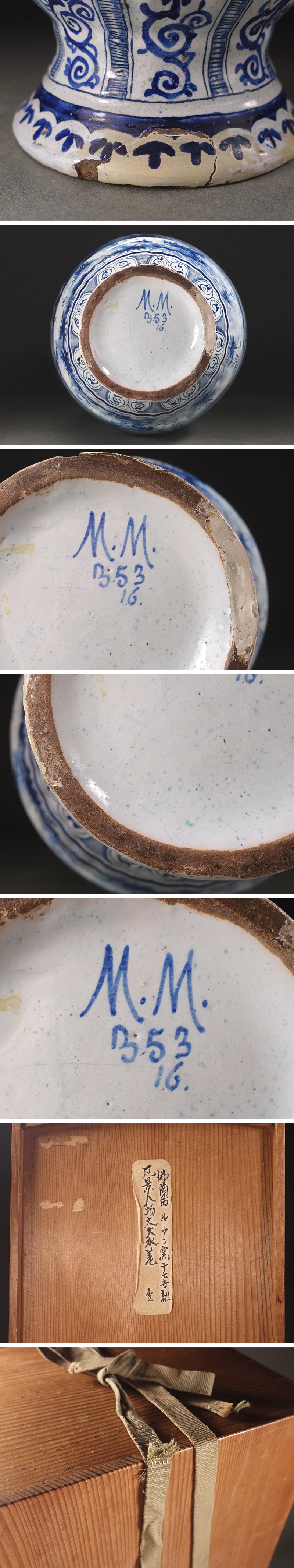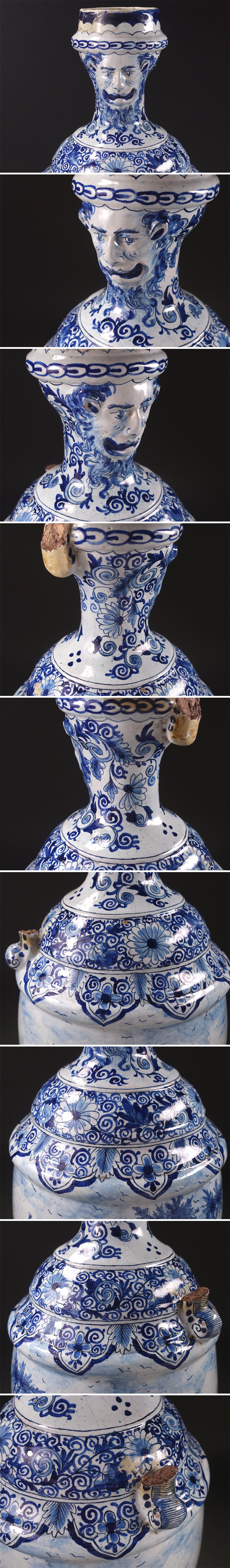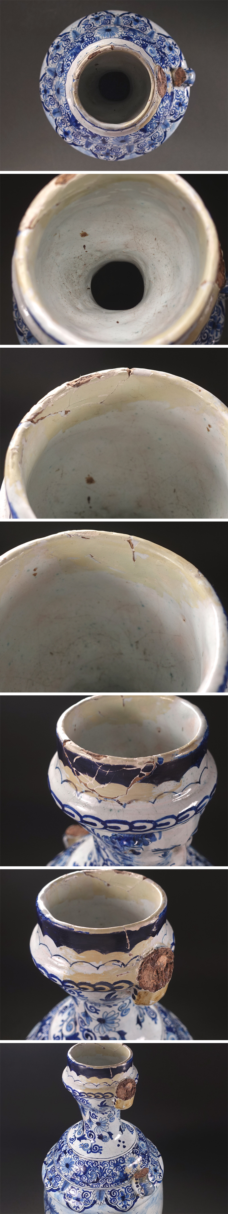 ∇花∇古デルフト陶器 18~19世紀頃オランダ 藍絵恋人図飾壷 花生 高さ34.5cm 鮮明なデルフトブルー 收藏