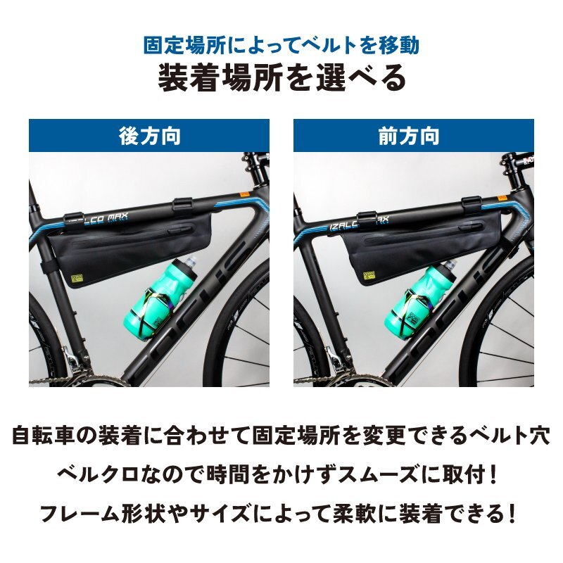 | 優れた防水性を持ち汚れや摩擦に強いとても頑丈なフレームバッグです。 生地には分厚く強度の高い生地を使用しシームレス一体式製法でさらに強力に。 水だけでなく汚れにも強いのが特徴です。 容量はLサイズで2Lでポーチや750mlのボトル、スマホなど収納できる十分なサイズです。 フレームの空きスペースを有効活用しバッグを装着する事で収納箇所を拡大。 シンプルでカジュアルなアウトドアデザインなのでどんなフレームにもぴったり。 SサイズとLサイズ、2タイプのサイズをご用意しています。 ロードバイクやクロスバイク、マウンテンバイクなどのフレームに取付けできる自転車用フレームバッグ。 ツーリングや長距離のロングライド、自転車旅、自転車通勤など様々なシーンで大活躍! [高防水] 防水性に優れた生地と縫い目のないシームレス一体式製法を採用し防水性を高めています。 表面に防水TPUコーティングとジッパーには防水性ファスナーを採用し防水性をさらに強化。 フレームバッグに付いた汚れも落としやすくなっています。 [強度が高い] 生地にはリュックの底部に使われる事が多い程に分厚く強度がある600Dナイロンを使用し強度を高めています。 擦れや摩擦にも強く破れたりするのを防止します。 [容量] 最大容量2LとSサイズが1.6L。水筒やチューブや鍵、工具や軍手、ポーチ、カメラ、薄手のウィンドブレーカーなどを収納。 大きく開く事で取出しがしやすくまた中身も確認しやすい! [ベルト穴] 自転車の装着に合わせて固定場所を変更できるベルト穴。 ベルクロなのでスムーズに取付け作業ができる。 商品内容フレームバッグ 生地分厚い600D ナイロン、表面防水TPUコーチング加工 (S)サイズ長さ26/30(下/上)cm, 高さ最大13cm, 幅5cm (L)サイズ長さ32/35(下/上)cm, 高さ最大13cm, 幅5cm 容量(S)1.6L / (L)2L 重量(S)180g / (L)200g | |