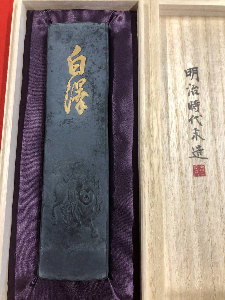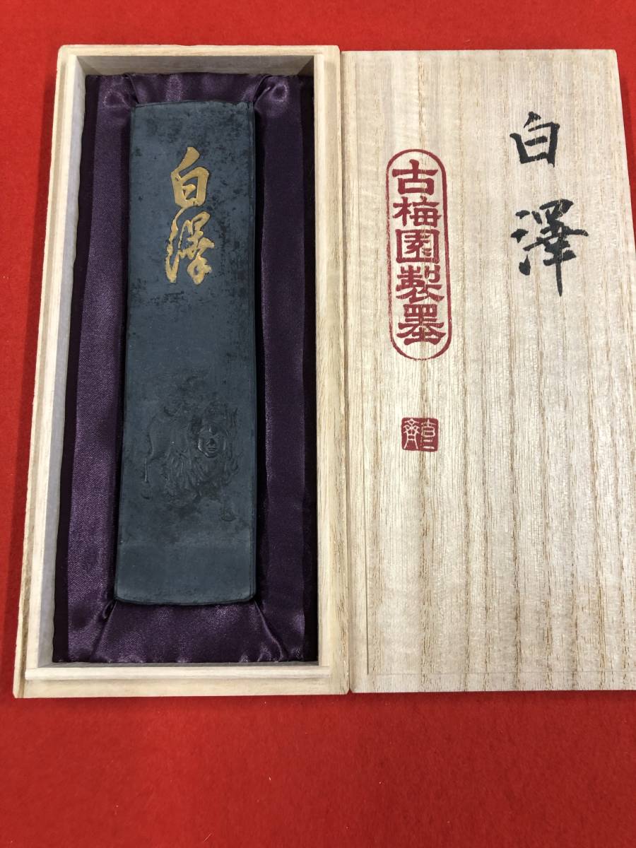 古梅園 書道墨 高級古墨 明治末期製造墨『白澤』稀少古墨 150g コレクター必見 古梅園特別高価箱入 收藏