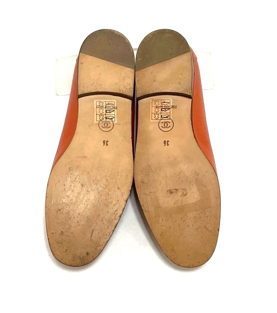 CHANEL シャネル ロゴ プレート レザー ローファー サイズ 36 オレンジ × シルバー系金具 735 24489 收藏