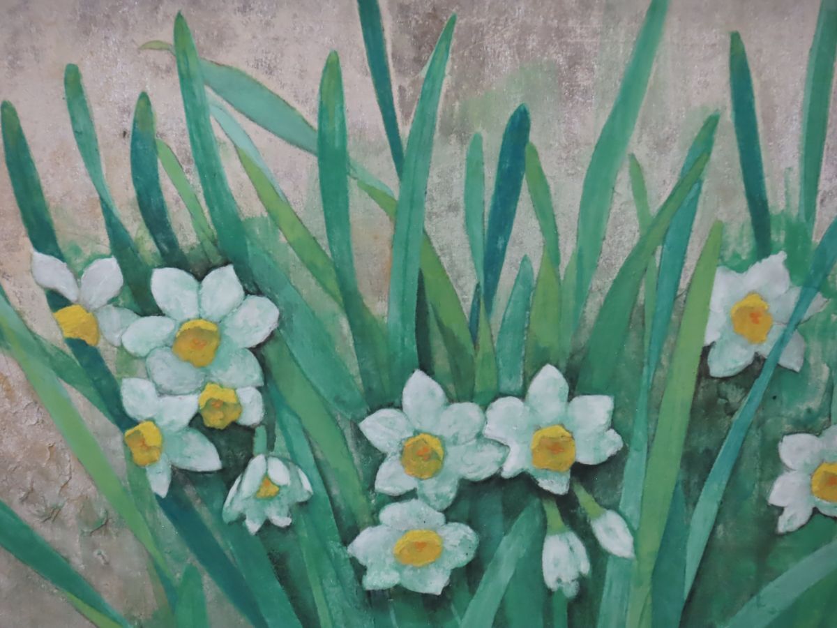 穂高「真作」前田青邨記念大賞 桜井敬史 「水 仙」日本画 3号 共シール 收藏