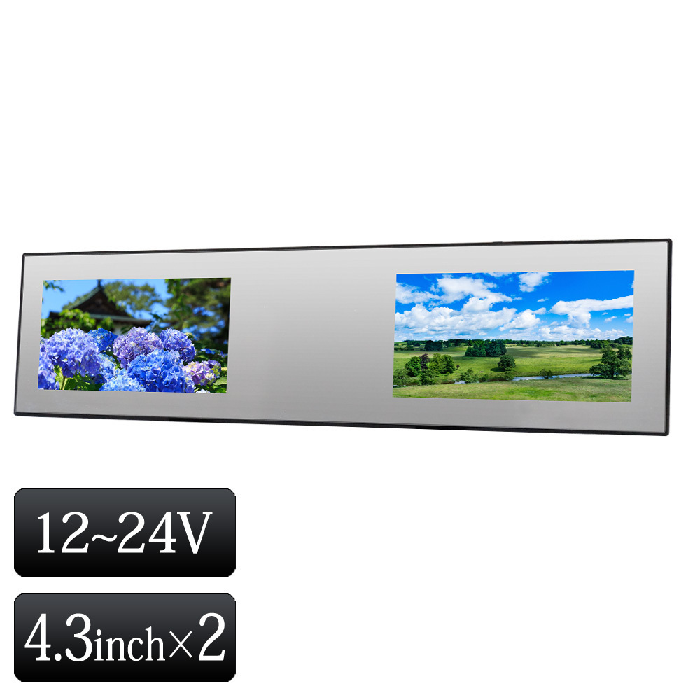 大特価★バックミラーモニター ミラーモニター 2画面 4.3インチ ルームミラーモニター 12V 24V 対応 B3432 收藏