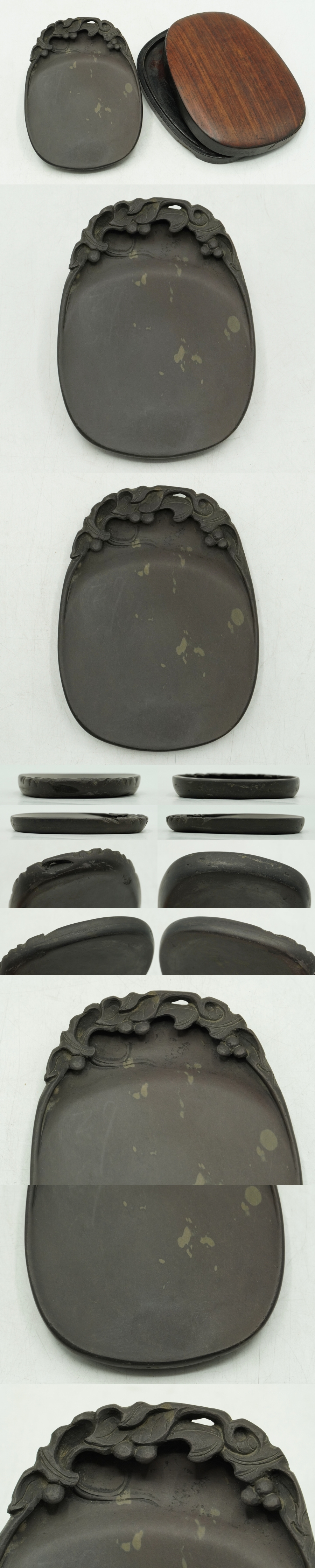 【楽久希】草果実彫 古硯 365g 共箱 石眼 水巌 水紋 端渓硯 端渓石 石彫 石硯 老硯 唐硯 書道具 文房四宝 唐物 中国美術 收藏