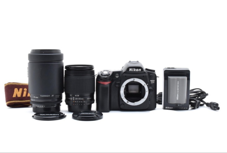 | 商品説明 | Nikon D80 ボディに、 標準ズームレンズ Nikon AF 28-80mm f/3.5-5.6 と 望遠ズームレンズ TAMRON 70-300mm f/4-5.6 が付属した撮影セットです。 すぐに撮影が可能なフル動作品です。 外観(Appearance) 全体的に良好な状態です。 ボディ背面にごく小さなスレがありますが、(画像あり) 目立つキズやヘコミはありません。 グリップのベタつきや劣化もありません。 ファインダー(Viewfinder) カビ・クモリ・バルサム切れなし。 ごく少量のホコリがありますが、視認性は非常に良好です。 動作(Function) すべての動作は正常に機能しています。 ミラーやシャッター動作もスムーズです。 上面・背面LCDは鮮明で、ドット抜けや焼けはありません。 レンズ(Nikon AF 28-80mm f/3.5-5.6) 外観きれいで、光学系にカビ・クモリ・キズなし。極少量のホコリはあります。 ズーム・フォーカス・絞り・AFすべて良好です。 レンズ(TAMRON 70-300mm f/4-5.6) 外観はわずかな使用感がありますが、全体的に良好です。 レンズ内は、カビ・クモリ・キズなし。極少量のホコリはあります。 ズーム・フォーカス・AF動作も問題ありません。 付属品(Accessories)