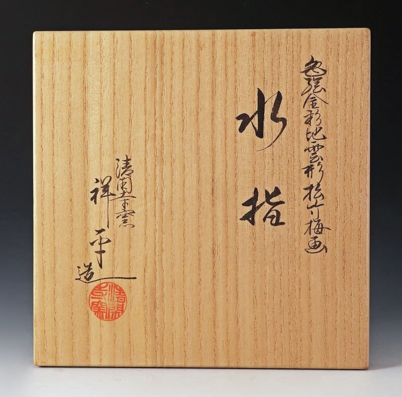 【古美味】清閑寺窯 杉田祥平造 色絵金彩地 雲形松竹梅画水指 茶道具 保証品