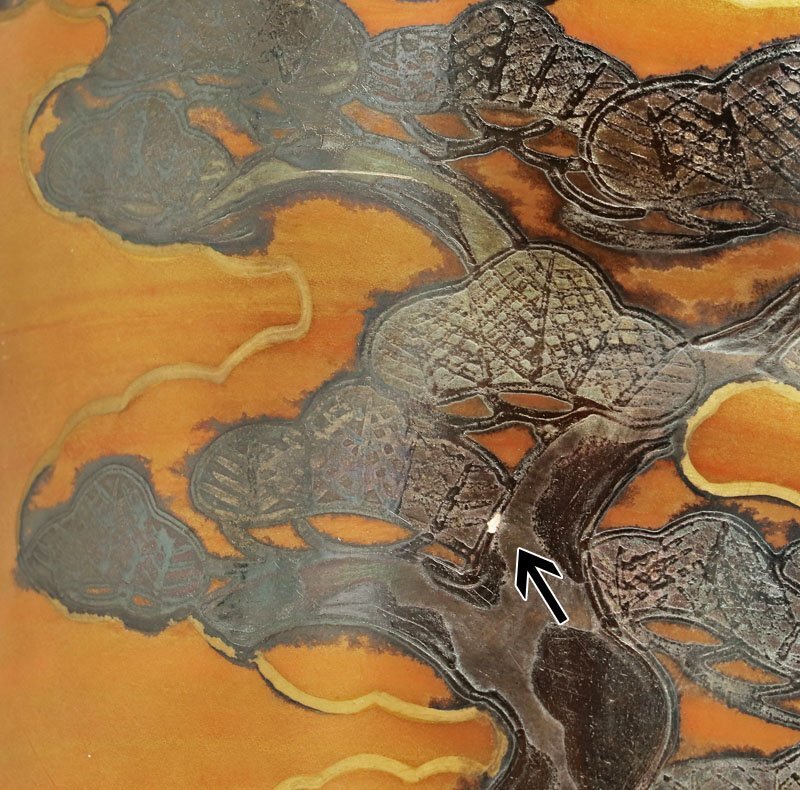 銀彩に小さなハゲあり(写真矢印部分参照)