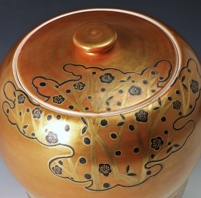 【古美味】清閑寺窯 杉田祥平造 色絵金彩地 雲形松竹梅画水指 茶道具 保証品 D0nV