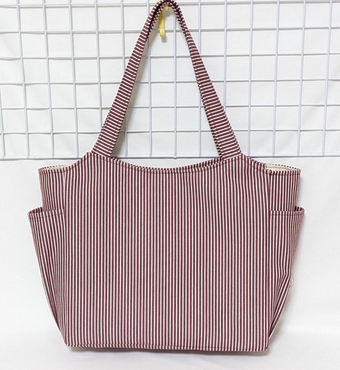 ヒッコリー カラーデニム・ガーネット(赤紫)のサイドポケット付きトートバッグW・ハンドメイド 收藏