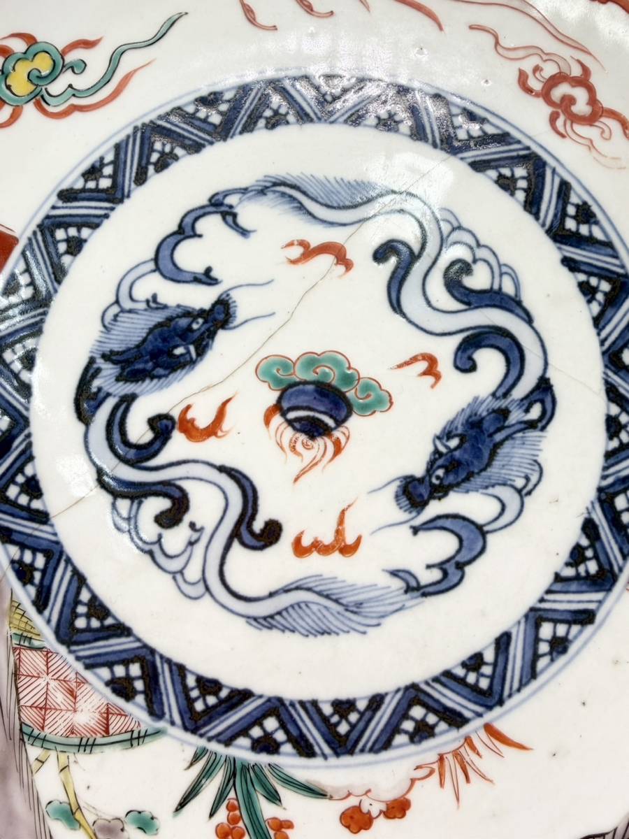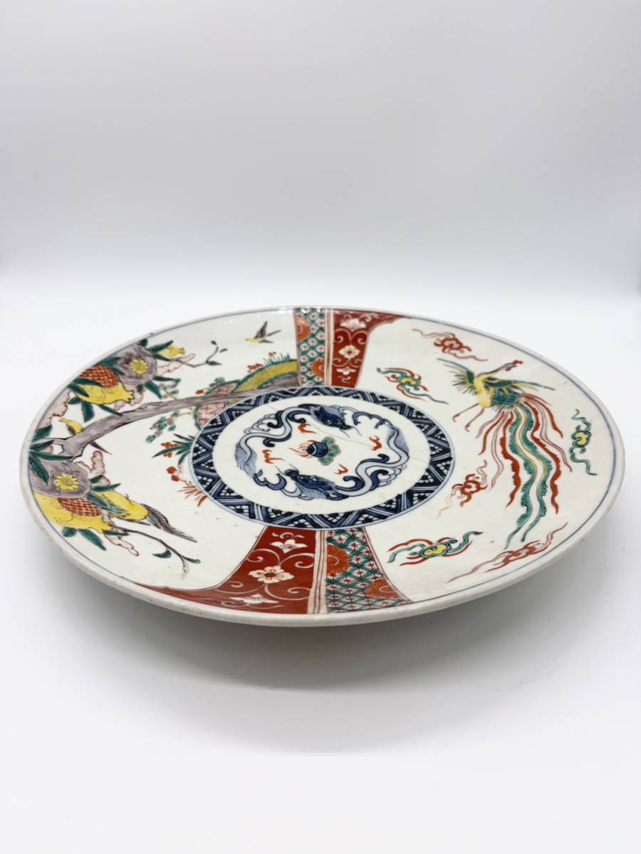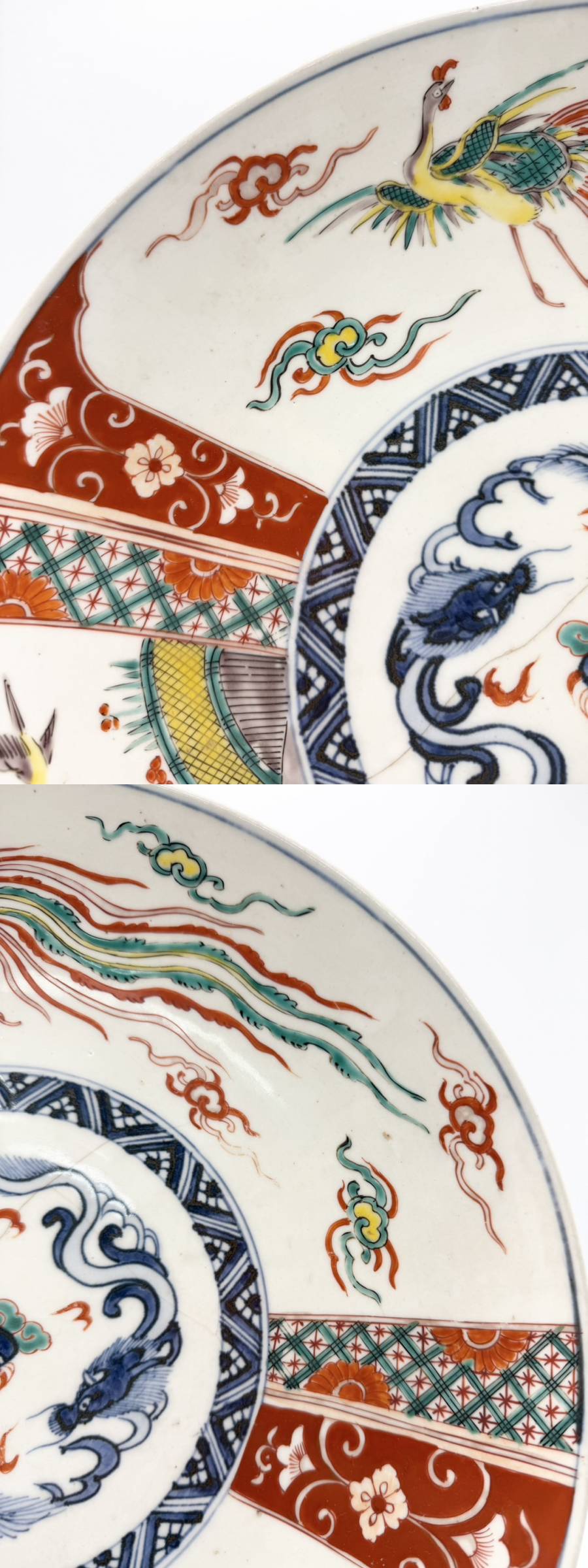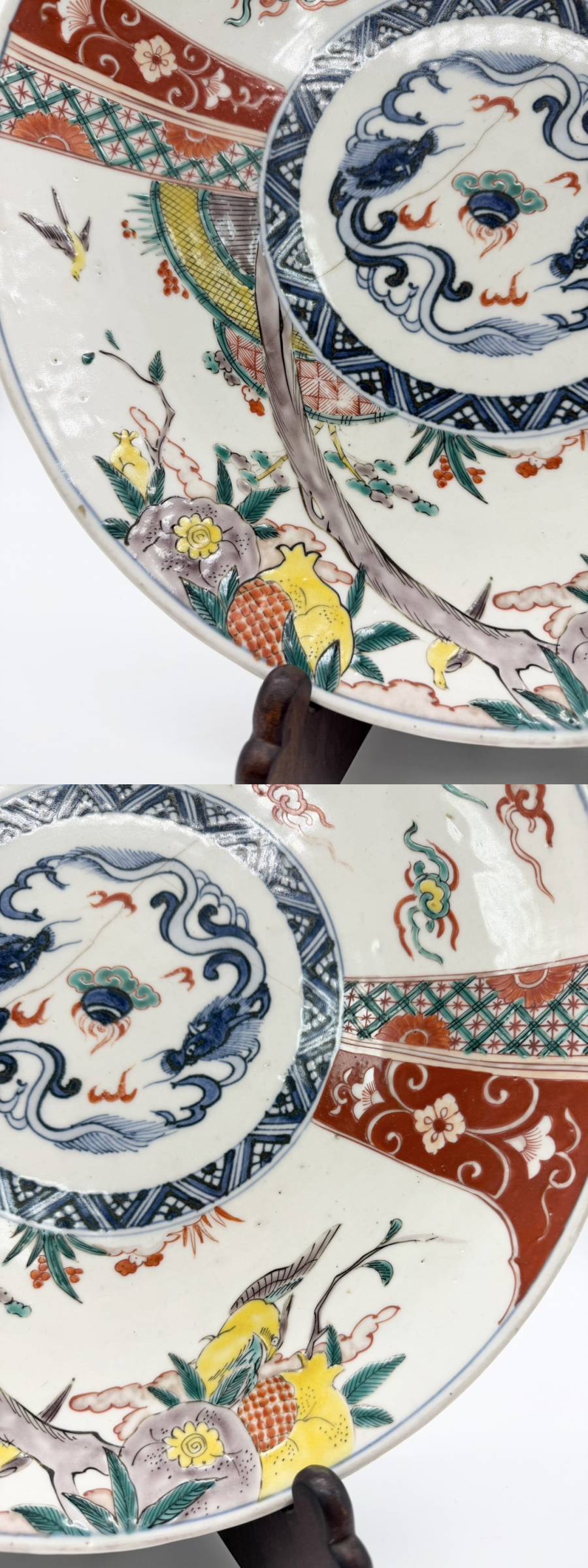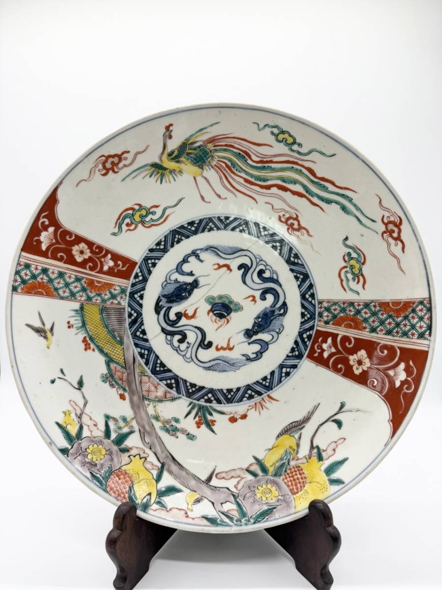 ●古伊万里 色絵 染付 飾り皿 飾皿 大皿 鳳凰文 花鳥図 有田焼