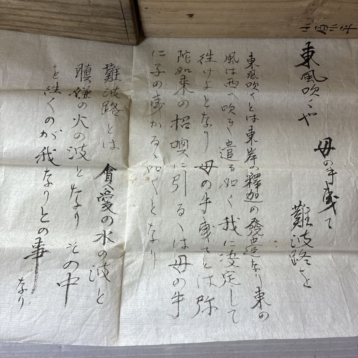 明治時代に真宗大谷派の方によって記載された掛け軸です。掛け軸には俳句が記載され、別紙には訳が記載されています。