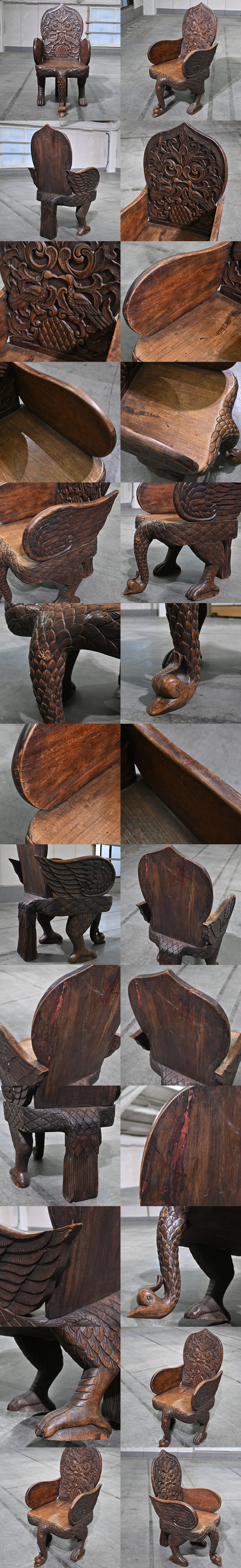 アングロインディアン 66万 ハイバックチェア 古木 彫刻 アーム ダイニング 孔雀 ピーコック ディスプレイ アンティーク ビンテージ 收藏