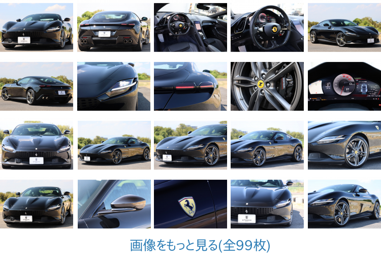 フロントミッドシップエンジンレイアウトを採用したエレガントなラグジュアリースポーツクーペ、フェラーリ、ローマ。最高出力620PSの3.9リッターV8ツインターボエンジンを搭載し、電光石火のシフトチェンジを可能とした8速F1DCTと組み合わせ、0-100km加速は3.4秒という俊足を誇ります。「2+2」の4人乗り仕様なので、車内に圧迫感はなく、快適そのもの。また、後席に荷物が積めるという利点もあり、実用性にも非常に優れた1台に仕上がっています。乗り心地も快適そのもので普段乗りに十分対応する、決して硬すぎない、絶妙な硬さに仕立てられた足回りも絶妙です。ADASフルパックや各種カーボンパーツ、鍛造20AWなどなど多数のオプションも装備し、弊社ならではのスペシャルプライスにてご提供致します!安くてもコンディションには絶対の自信があります。フェラーリにしてはやや距離が多く感じる方もいらっしゃると思いますが、まだ4万キロを少しまわったところです。まだまだこれからですし、機関に違和感は一切ございません。是非一度試乗しにいらして下さい。きっと気に入って頂けると確信しています。