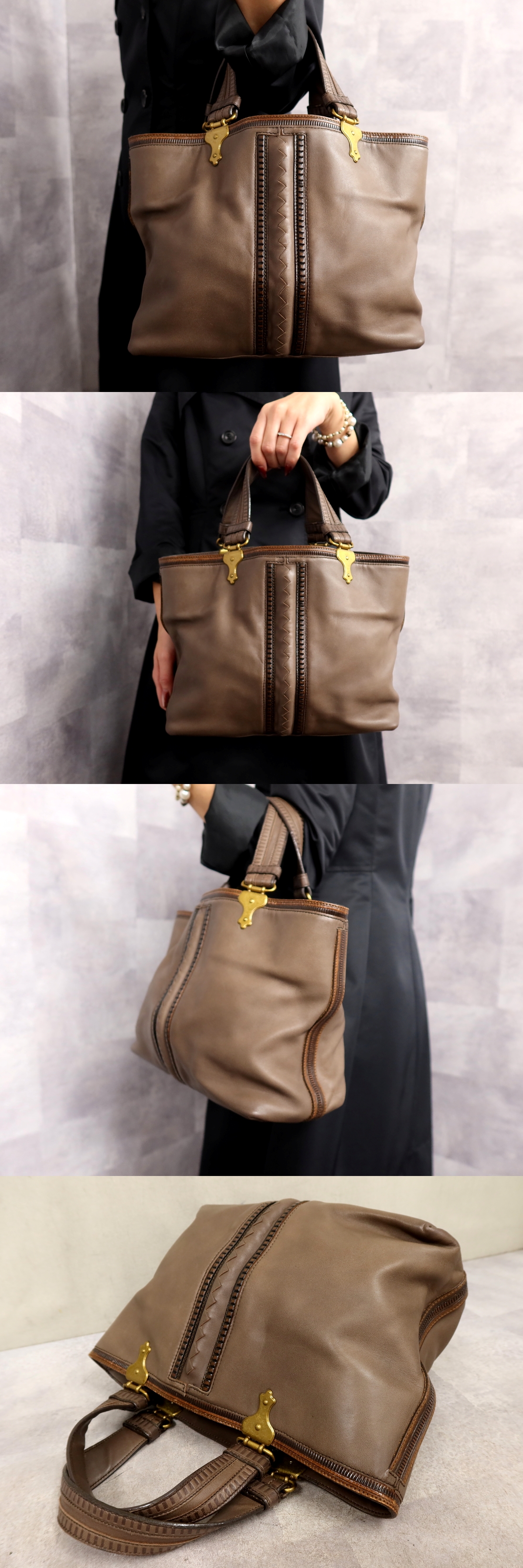 ●超美品●BOTTEGA VENETA ボッテガ ヴェネタ●カーフ レザー 本革●トート ハンド バッグ●ライトブラウン●G金具●B5 書類 収納●Js63081 收藏