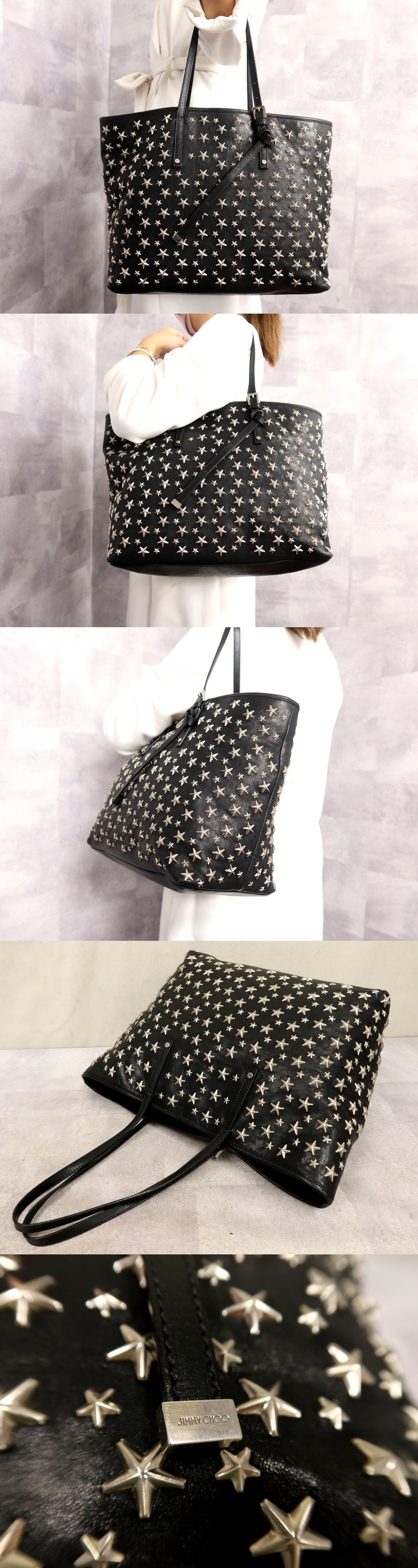 ●超美品●JIMMY CHOO ジミーチュウ●サシャ●スタースタッズ●カーフ レザー 本革●トート バッグ●黒●シルバー金具●A4 かばん●Js62982 收藏