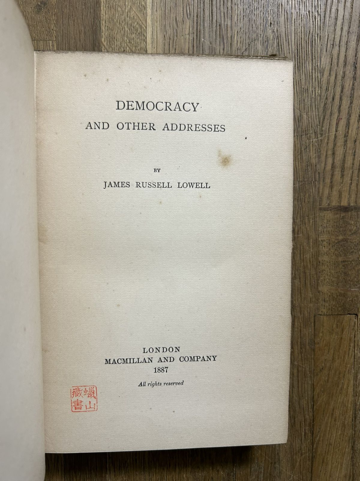 1887年 初版 ジェームズ・ラッセル・ローウェル 民主主義ほか演説集 James Russell Lowell, Democracy and Other Addresses 英文洋書古書 收藏