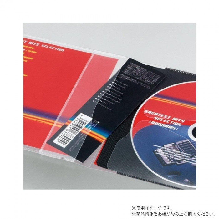 | 市販のCDやDVDの中身はそのままで、元のケースの半分以下のスペースで収容が可能です。ディスクのほかにブックレット・背タイトル(オビ)・裏ジャケットも一緒に収容できます。背タイトル(オビ)をきちんと収容できるポケットが付いています。 ※CDおよびブックレットなどは製品本体に付属していません。 |