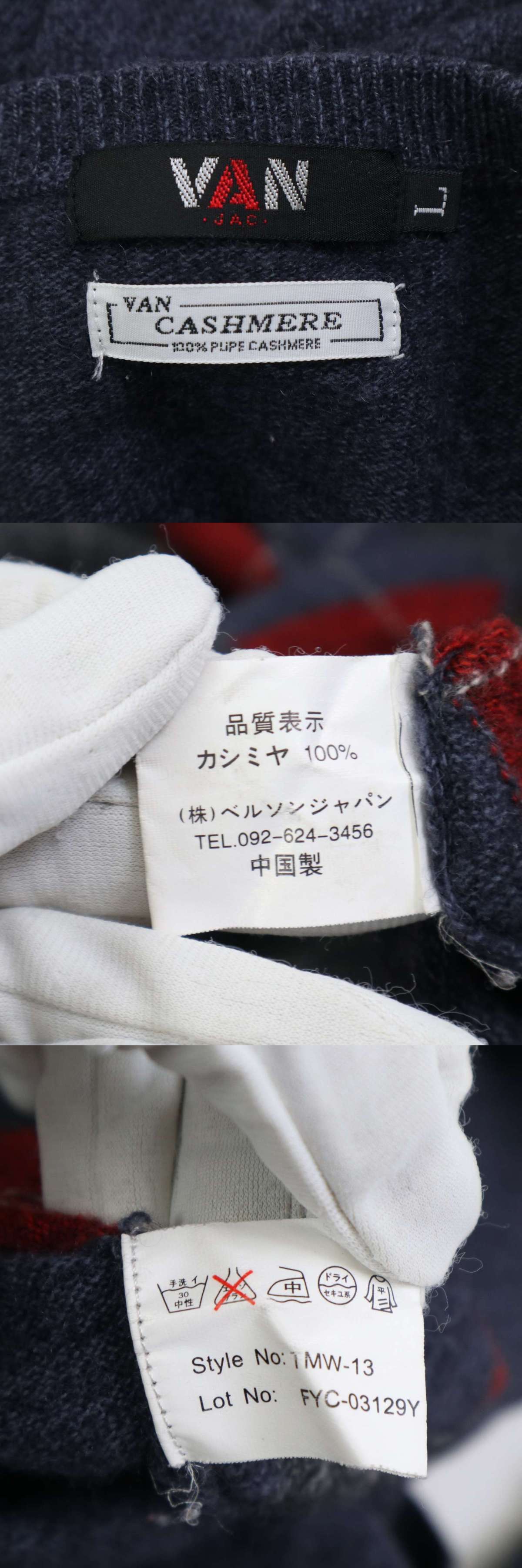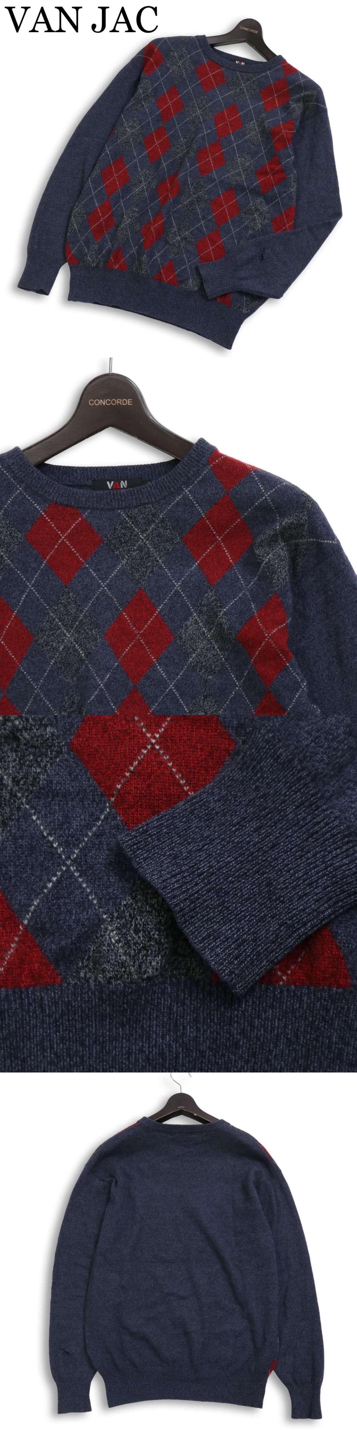 VAN JAC ヴァン ジャック 秋冬 カシミヤ100%★ アーガイル ニット セーター Sz.L メンズ 收藏