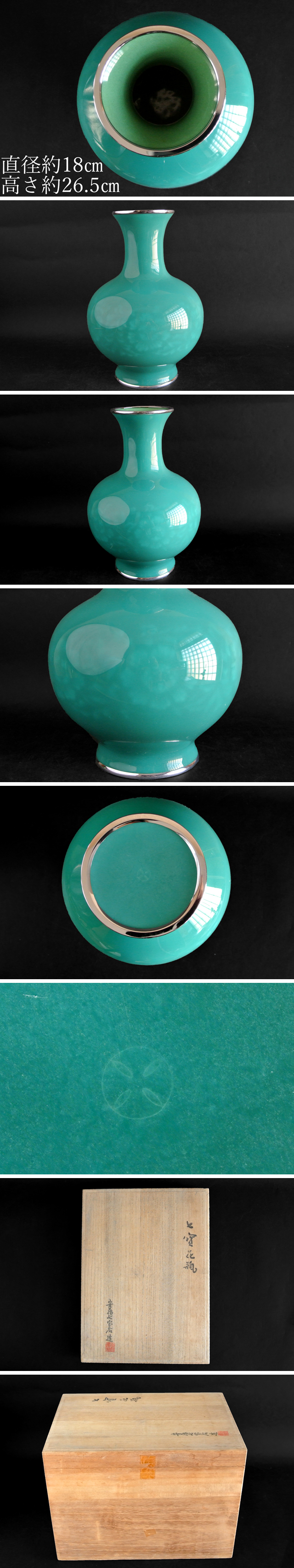 安藤七宝 翡翠釉 牡丹文 花瓶 收藏
