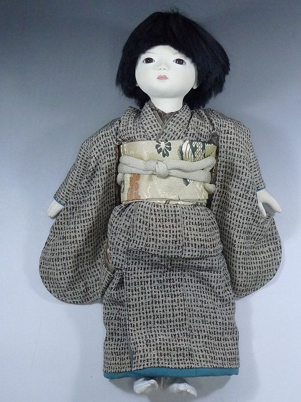 10TR133★人形作家物・創作市松人形 女の子 身長約47㎝ ちりめん小紋ふき綿入り着物 日本人形 ビスクドール 收藏