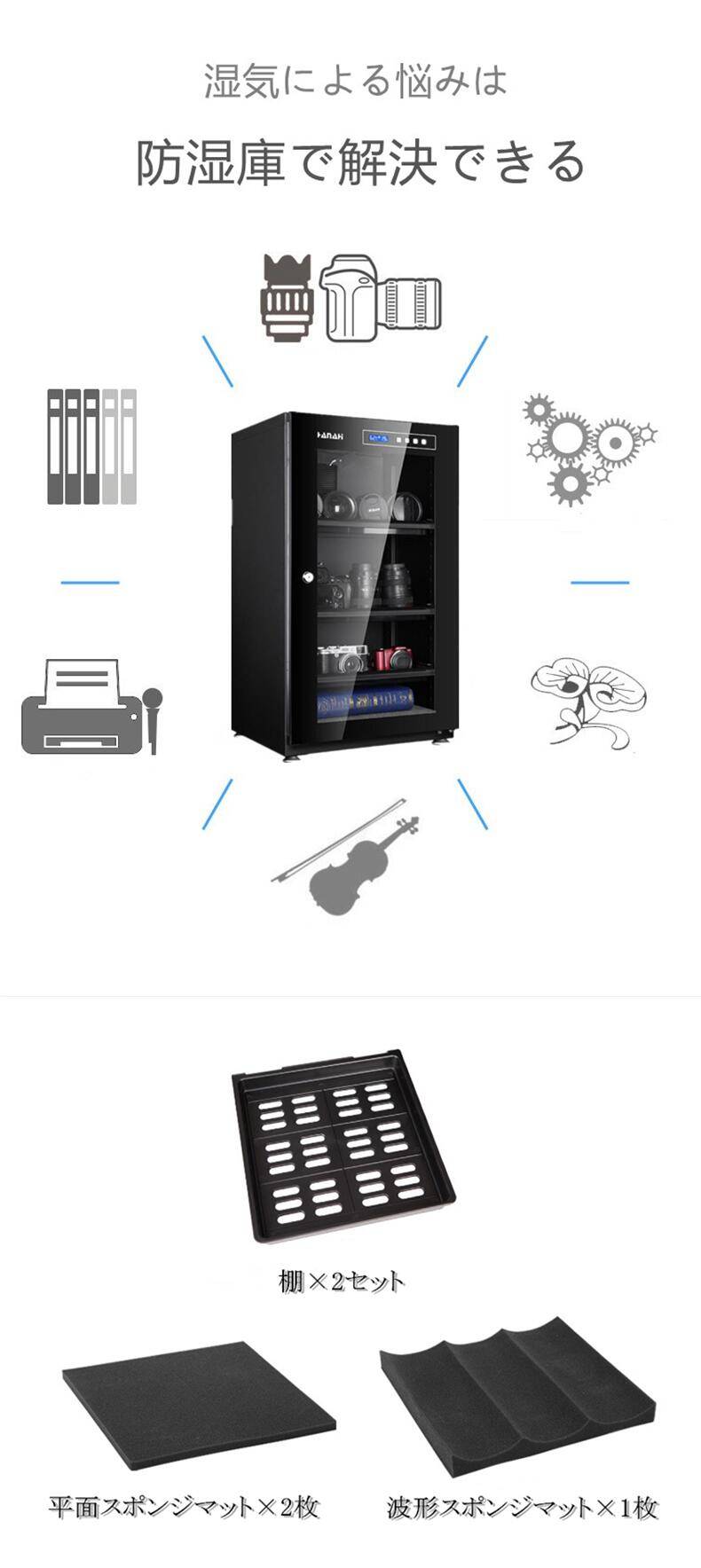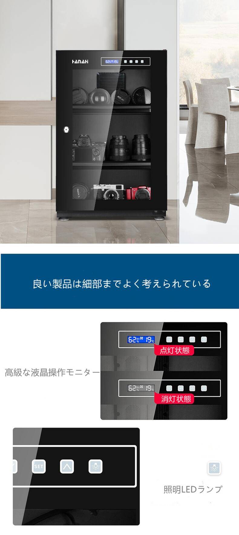 HANAHI カメラ保管庫 全自動防湿庫 除湿庫 ドライキャビネット LED庫内照明 5年間品質保証 HNH-90C 收藏