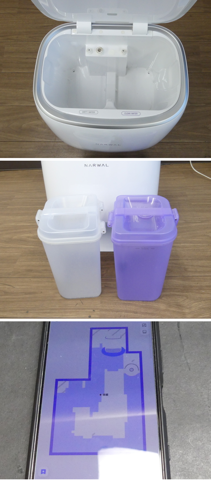 | ◇商品情報◇ | 当店の商品をご覧いただきありがとうございます!! Narwal Freo ナーワルフレオ ロボット 掃除機 YJCC012 YJCB012 自動クリーニング 充電ステーション No2 本体は充電し掃除開始、ホーム帰還は行えました。 アプリと連動して操作、マップ製作なども行えました。 本体、ステーション共にボタン、タッチ操作は行えました。 長時間や詳細な操作カスタム設定等の実際の使用に即した確認などは行っていません。 本体初期化済みです 使用、経年相応のスレや汚れ、キズなどはございます。 長期間、長時間の確認は行っていませんので電池の持ちはわかりません。 現状でのお譲りとなりますので点検整備交換等が必要な場合は落札者様にてご対応ください。 付属、種類、状態などは画像よりご確認、ご判断くださいませ。 ※目視チェックをしていますが、表記漏れや見落としや細かな擦れ・薄汚れなどがある場合もございますので予め画像をご確認の上でご入札をお願いいたします。 商品のトップ画像端に写っている茶筅はサイズ比較用の備品ですので付属はしません | ||||||||||||||||||||||||||||||