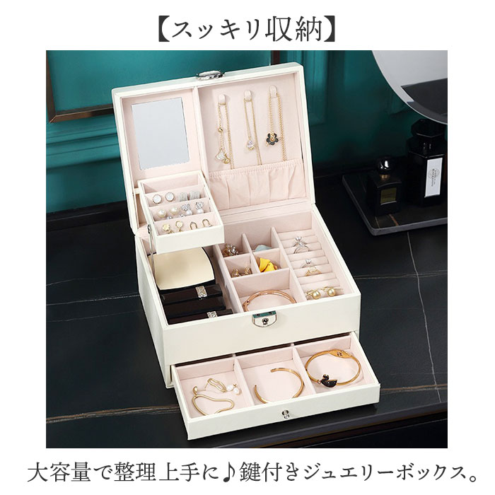 ☆ ホワイト ☆ ジュエリーボックス 収納 ジュエリーボックス ジュエリーケース 宝石箱 アクセサリーボックス 大容量 アクセサリーケース 收藏