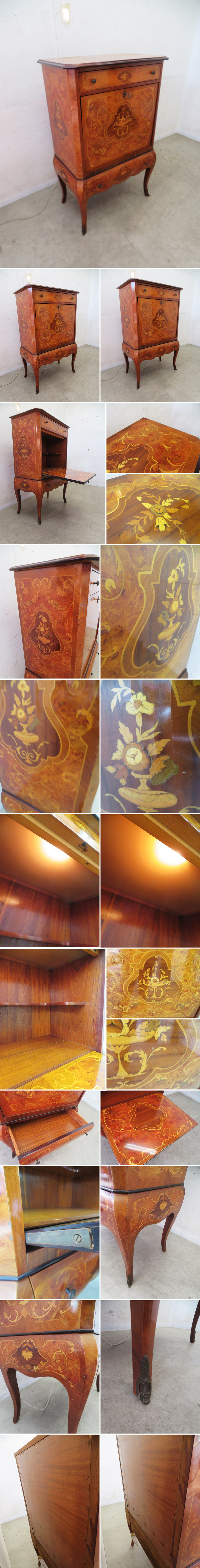 ■P309■イタリア最高峰■MARCONI ARTE マルコーニアルテ■象嵌■キャビネット■照明付き■猫脚■クラシック■伝統工芸■希少 收藏