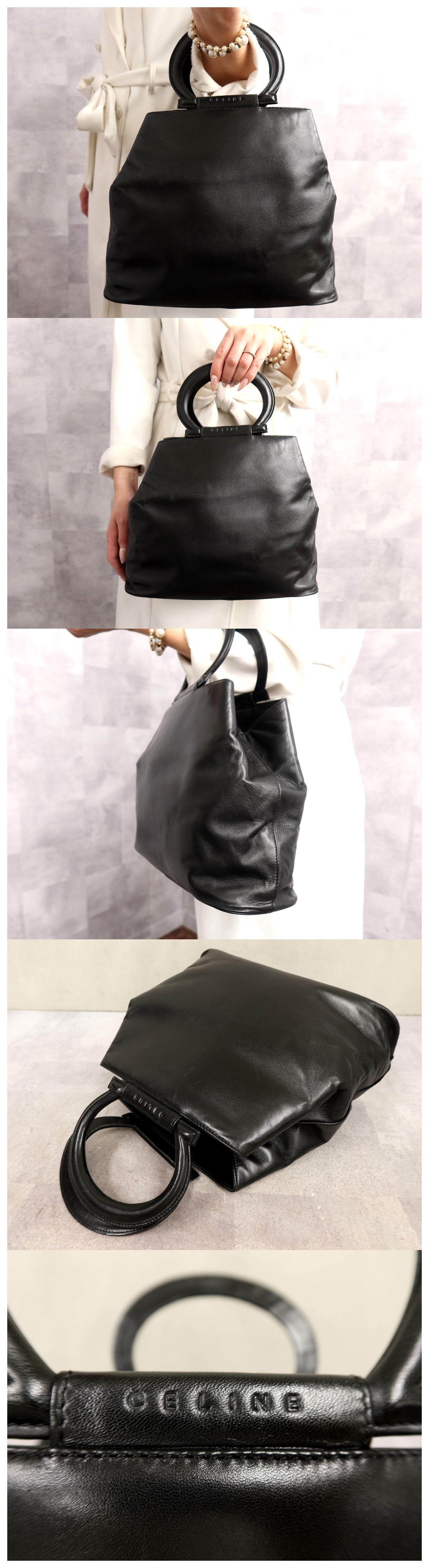 ●超美品●CELINE セリーヌ●ロゴ型押し●カーフ レザー 本革●ハンド バッグ●黒●シルバー金具●B5 収納●書類 かばん●腕掛け●Js65248 收藏