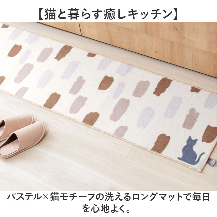 ☆ パステルと猫がくれた世界ベージュ ☆ キッチンマット 240 キッチンマット 240cm 240センチ 240CM キッチンラグ 45×240cm ロングマット 收藏