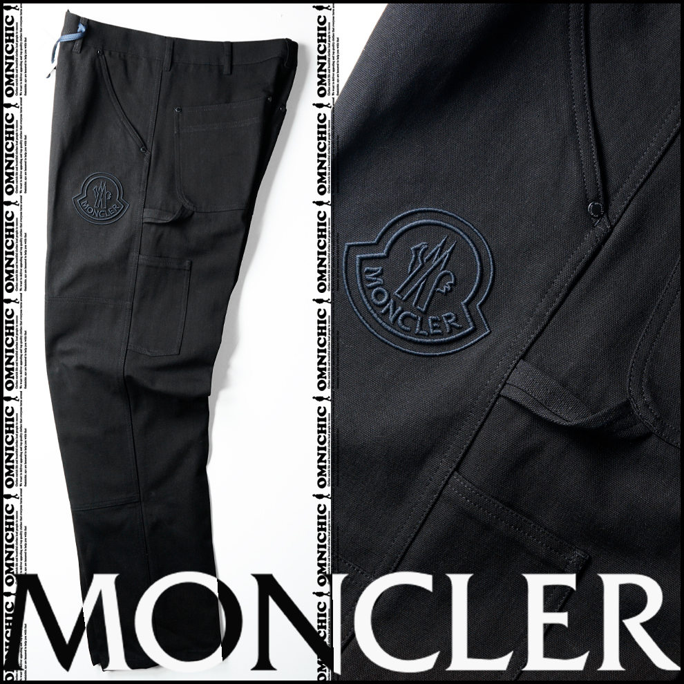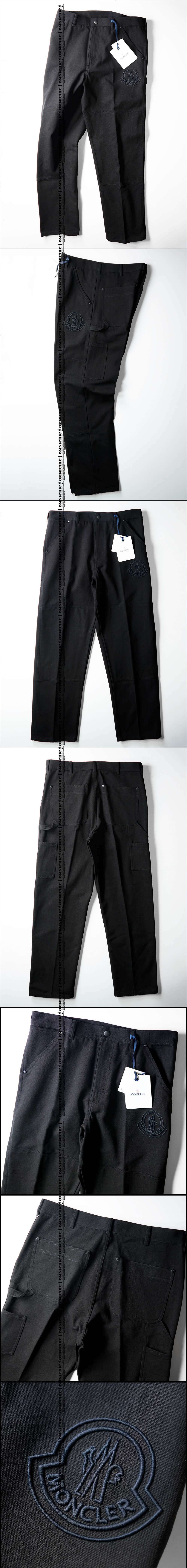 ビック刺繍ロゴが目を引く!■安心の新品正規品【MONCLER】モンクレール贅沢ブラックヘビーキャンバスダブルニーパッチペインターパンツ52 收藏