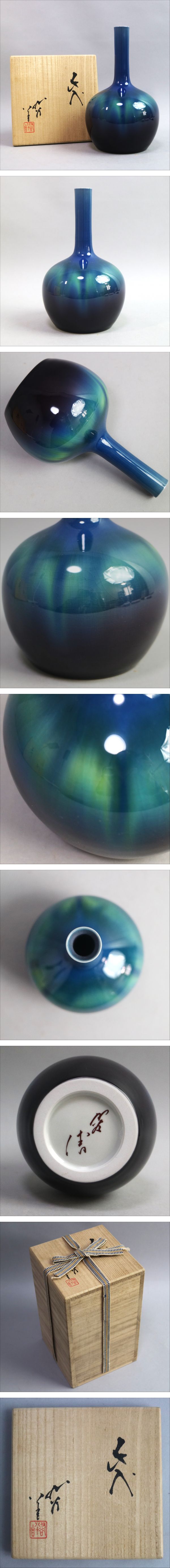三代徳田八十吉 一輪挿し 花瓶 花入れ 花器 高さ約16.5㎝ 共布 共箱 陶歴付き 收藏