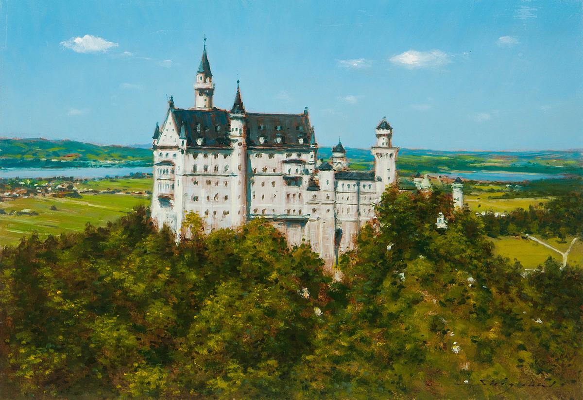 【1on1】真作 若山茂 『ノイシュヴァンシュタイン城』 油彩 キャンバス 20号 額装 ■ フランス芸術家協会会員 ル・サロン会員 收藏