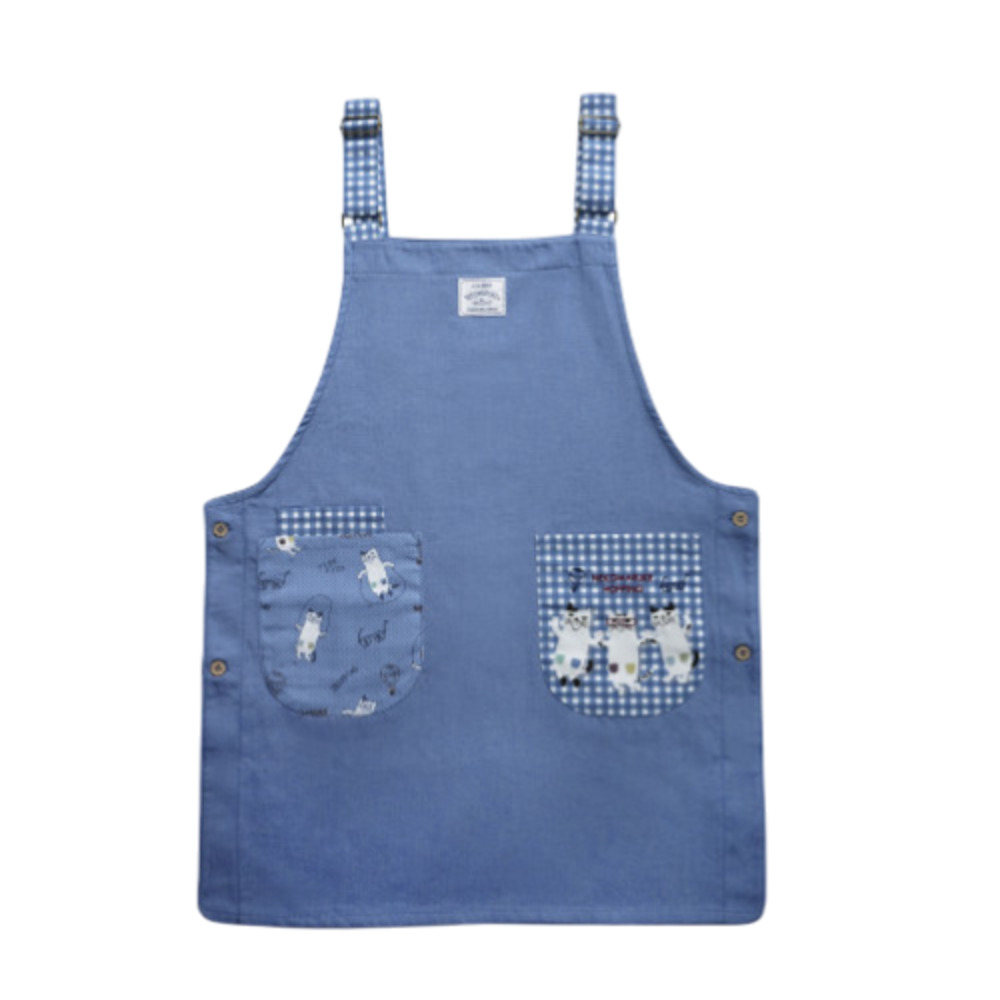 ☆ 両脇釦あき/ブルー ☆ ネコまるけ エプロン エプロン おしゃれ 猫 ねこ ネコ 着脱が簡単 レディース女性 シンプル 無地 收藏
