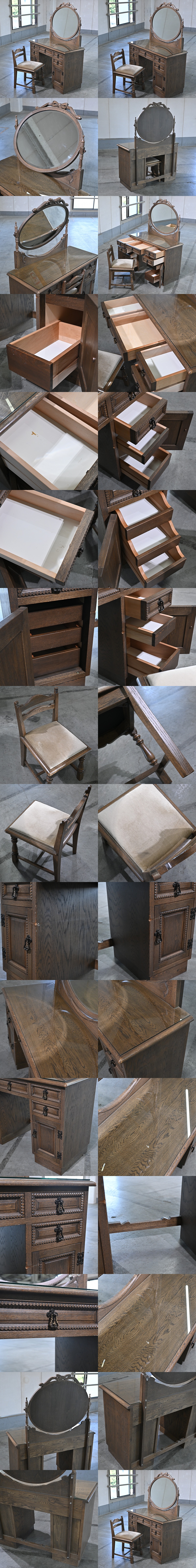 ★ アンティーク調 ドレッサー チェア セット オーク材 引き出し 収納 化粧台 寝室 ガラス 椅子 クラシカル_横浜ダニエル 三越ブルージュ 收藏