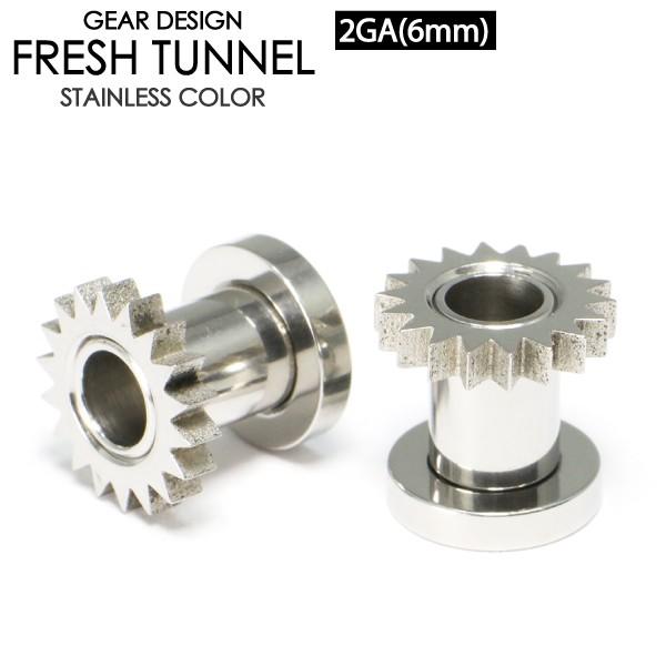 フレッシュ トンネル ギア 2G (6mm) アイレット サージカルステンレス 歯車デザイン ハード ボディピアス イヤーロブ 2ゲージ 6ミリ ┃ 收藏