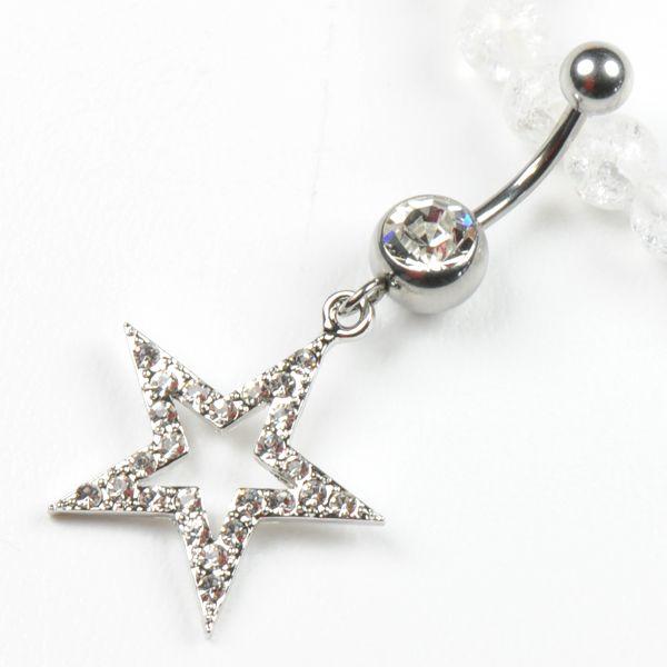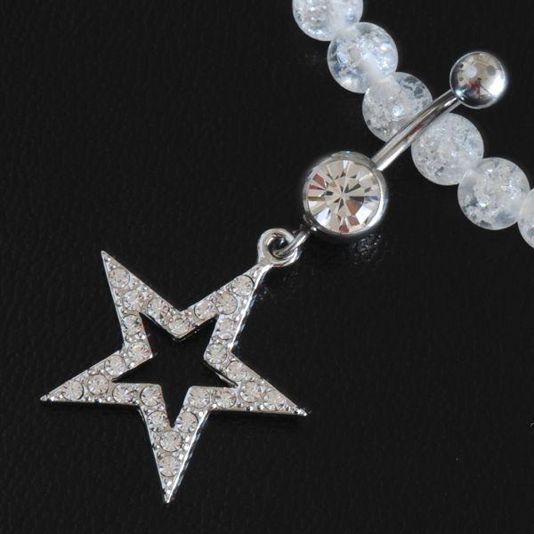 ヘソピアス ゴージャス ラインストーン 星 スター14G(1.6mm) クリアジュエル デザイン バナナ ボディピアス イヤーロブ HESO-10023┃ 收藏