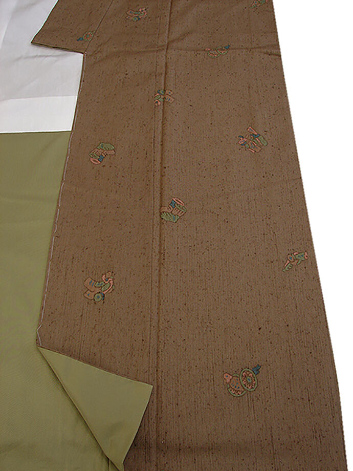 店舗改装セール!美品!裄62.9cm 超大特価 S寸 玩具柄 真綿紬 正絹 未使用 仕付糸付 袷 147cm~153cm T397 收藏