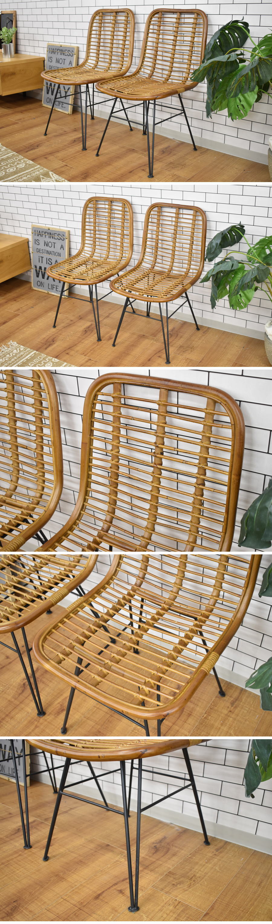 チェアー 2脚セット ダイニングチェア ラタン 鉄脚 リゾート アジアン エスニック おしゃれ 食卓 椅子■送料無料(一部除)新品未使用■193-2 收藏