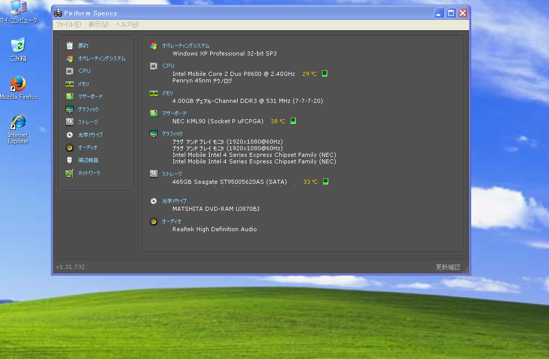 ストレージ(HDD) | 500GB HDD ソフトでチェック済--正常 SSDへの変更をおすすめします。 HDDに比べると起動やファイルの読み書きが大幅に高速になるだけでなく、 省電力、軽量、耐ショック性、低発熱のメリットがあります。 |