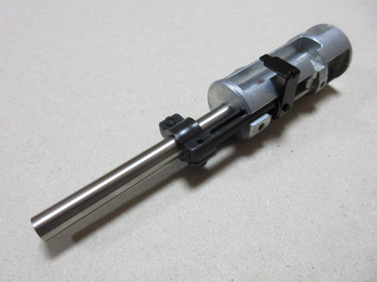 新品のVSR-10プロスナイパーバージョンにlaylaxショートバレルキット+カスタムシリンダーASSYを組込み初速調整しました。シリンダーはステンレス製で強度もあり、純正の真鍮シリンダーとは比べ物にならない強度があります。ピストンはアルミ製で、スプリングガイドはスチール製ですので、流速チューンやショートバレル化で強いスプリングを組んでもびくともしない位の強度を誇ります。