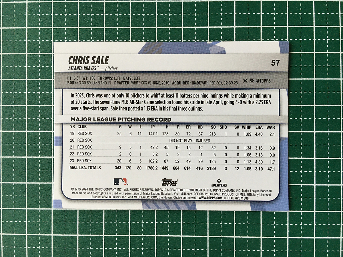 ★TOPPS MLB 2024 BIG LEAGUE #57 CHRIS SALE[ATLANTA BRAVES]ベースカード「BASE」★ 收藏