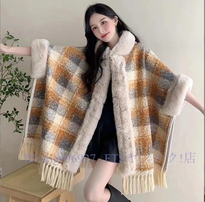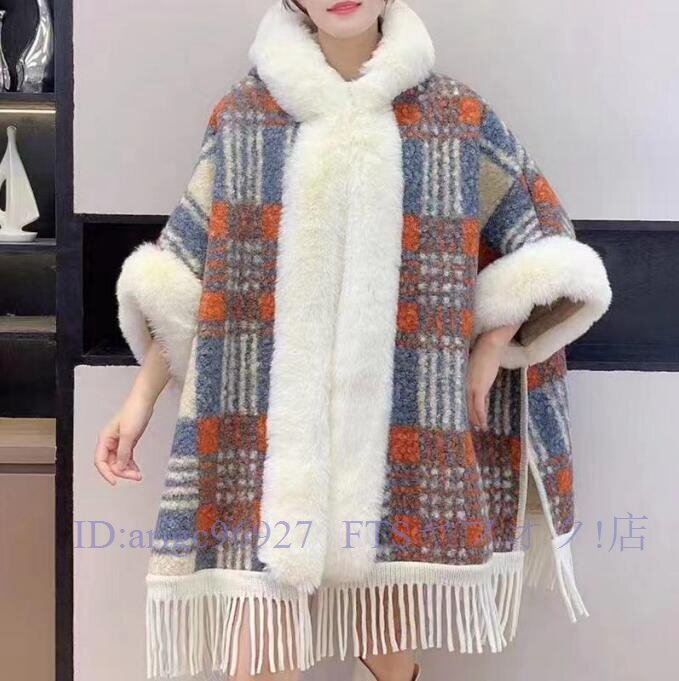 A6218☆新品冬 ポンチョコート レディース マントコート フリンジ 高級 フェイクファーカシミヤニットカーディガン 收藏