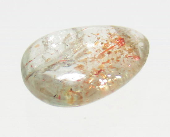 もとの石「オリゴグレース(灰曹長石)」は色が、無色、淡黄色、淡緑色とあり、赤色で赤鉄鉱や針鉄鉱がキラキラと光るものを「サンストーン」と呼びます。そのキラメキが太陽の様に眩しく、ムーンストーンの静かな光と好対照です。どちらも長石の名称でなく光学効果を持つ石に付けられた宝石名称になります。キラキラと輝くインクルージョンは、レピドクロサイトで、アベンチュリン効果で輝く為、アベンチュリン・フェルドスパーとも呼ばれます。サンストーンは長石グループの中で、いくつかのタイプがありますが、主に古典的なインド産のオリゴグレース種とオレゴン州から新産のラブラドライト種の2つです。他にオーソクレース種のものもあります