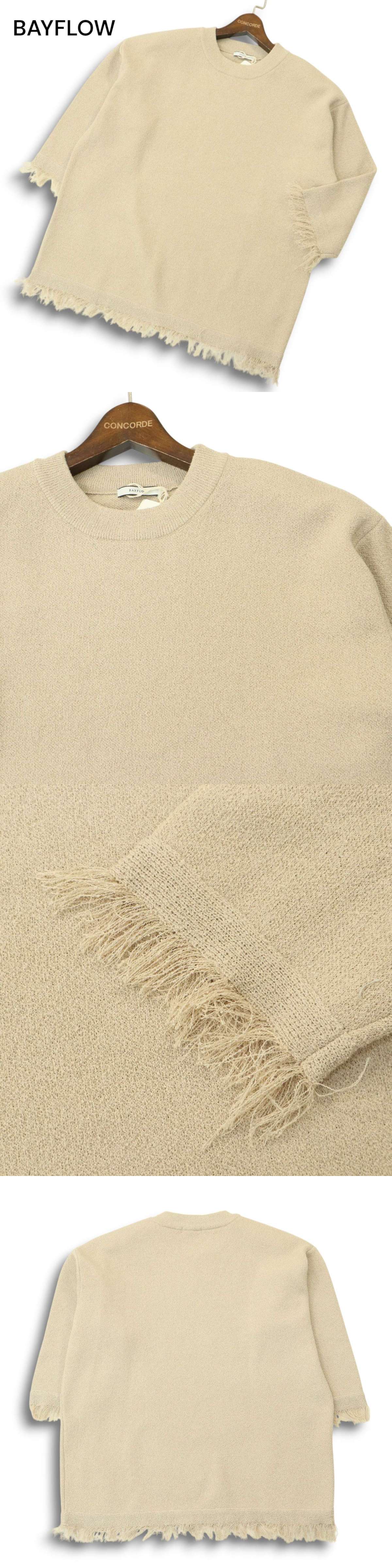 【新品 23SS】 BAYFLOW ベイフロー 春夏★ 5分袖 ブークレ ニット フリンジ プルオーバー カットソー Sz.F レディース 收藏
