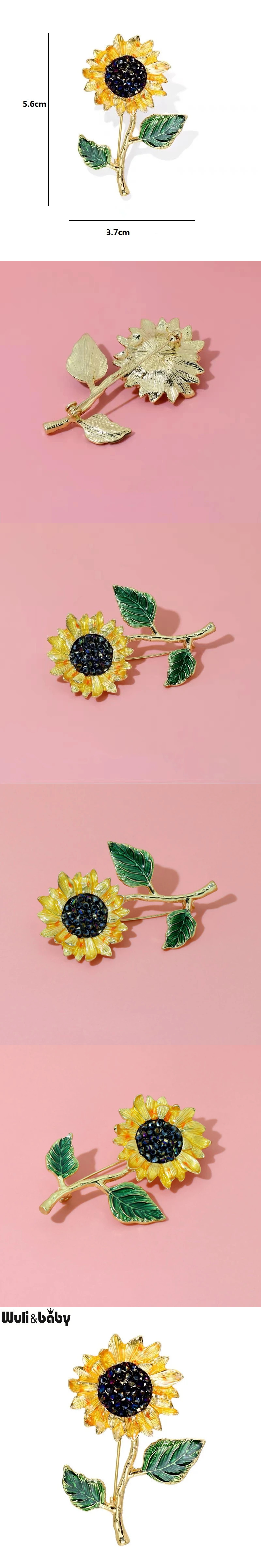 ブローチ ヒマワリ プラント 木の葉 リーフ レディース エナメル 2 ピン ファッション ジュエリー 收藏