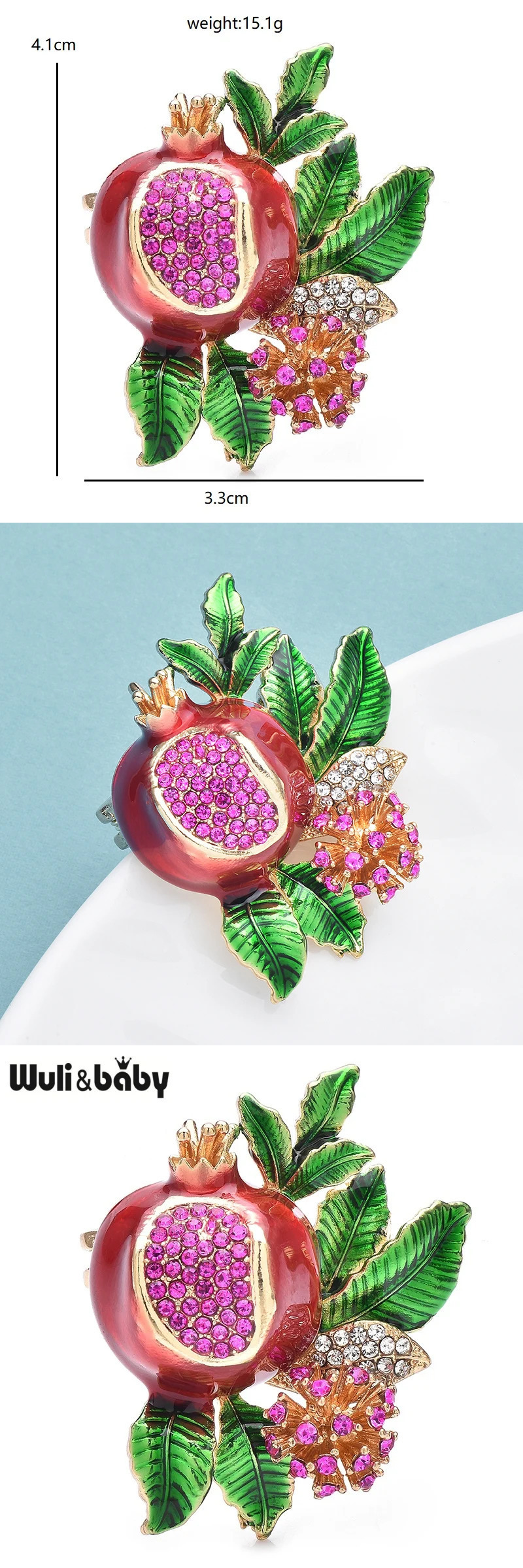 ブローチ ラインストーン 花 フラワー フルーツ ザクロ 果物 レディース メンズ 綺麗 ピン エナメル 收藏