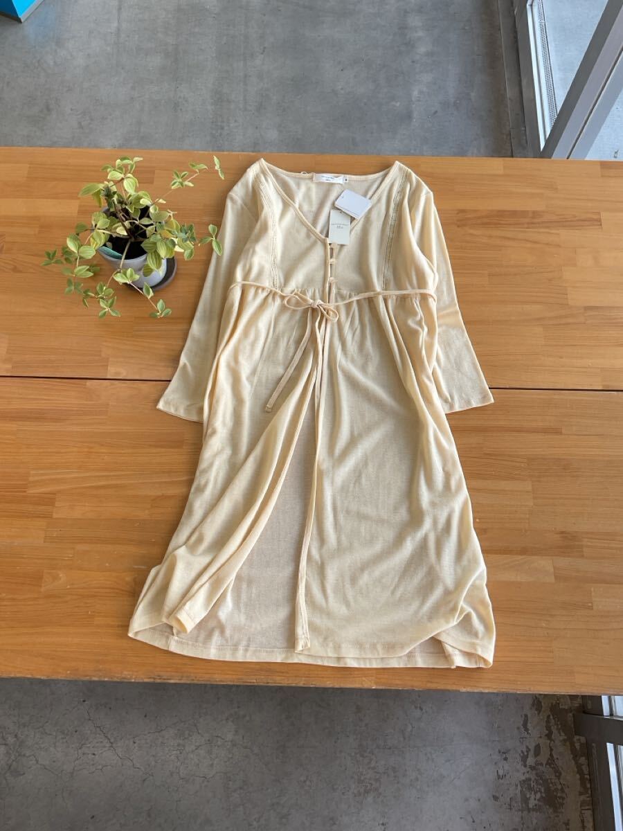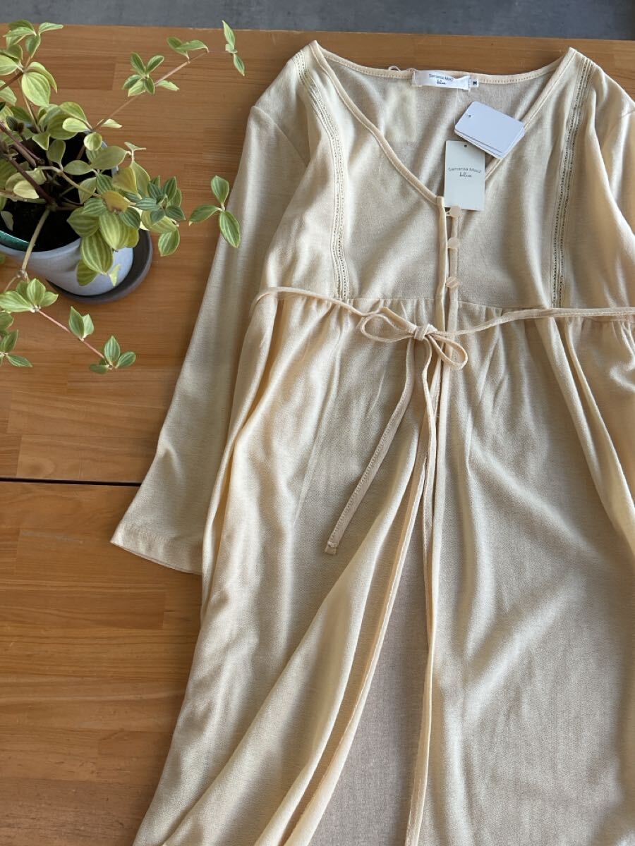 新品タグ付 Samansa Mos2 サマンサモスモスsm2 Vネックロングカーディガン レースワンピーストップス チュニック イエロー黄色系 Mサイズe 收藏