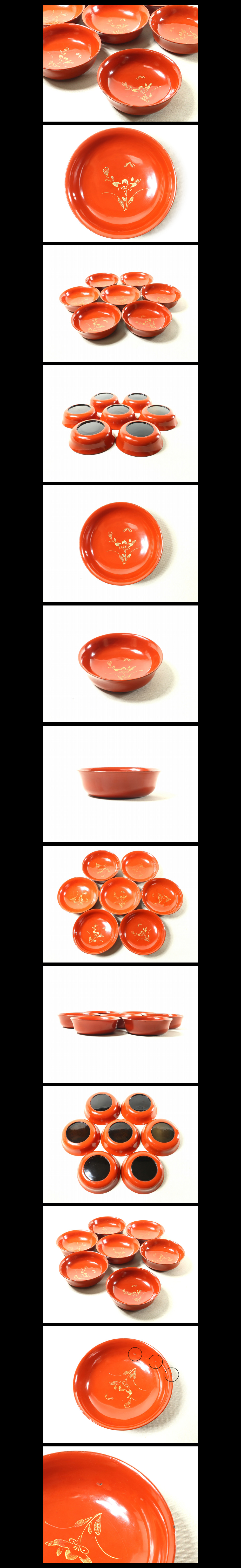 ●c039●美形【沈金菓子皿7客 花と蝶々 朱 大正期/木皿吸皿酒木皿つまみ皿】検お茶会煎茶道具茶懐石道具蒔絵●西瓜●